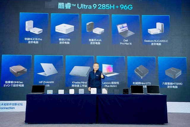 现场展示的首批产品,包括:华硕NUC15 Pro、零刻GTi15、创盈芯A3A、极摩客EVO-IT、机械师MiniGTS、六联MTB19D、Geekom NUCAR01-C包括戴尔Pro Max 16、惠普战99 16 Gli、联想昭阳悦Plus 16IAH等等。