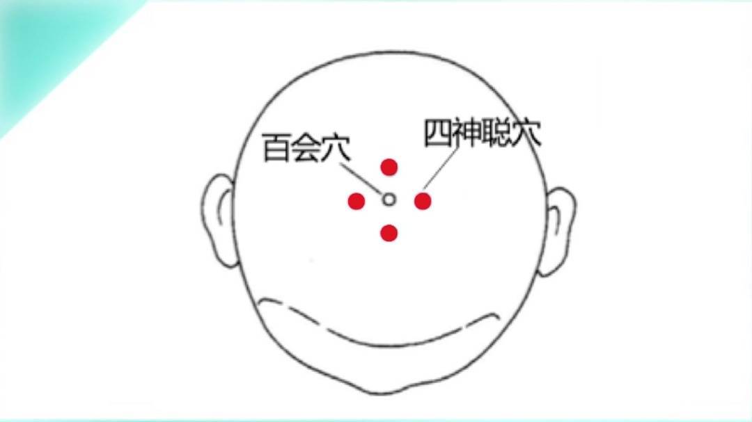 四神聪穴:百会穴前后左右各一寸(拇指第一关节宽度)。